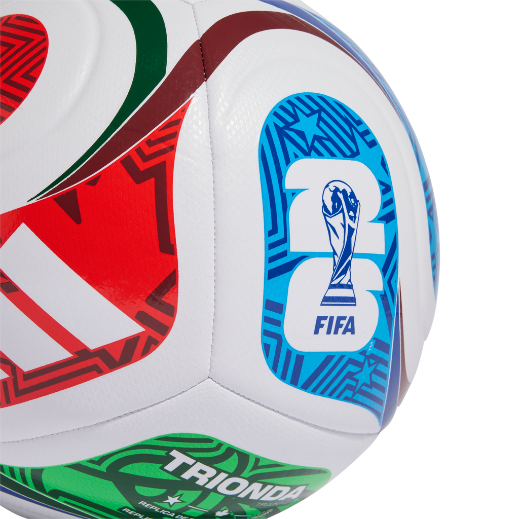 A spectacular sight first seen at sporting venues across the Americas, the iconic "la ola" wave inspires the flowing, six-panel design of this adidas Trionda Training ball. Perfect for polishing your skills, it has a durable, machine-stitched construction. Mimicking the look of FIFA World Cup 26™'s official match ball, debossed details and surface texturing join the symbols and colours of the tournament's three host countries on the cover.