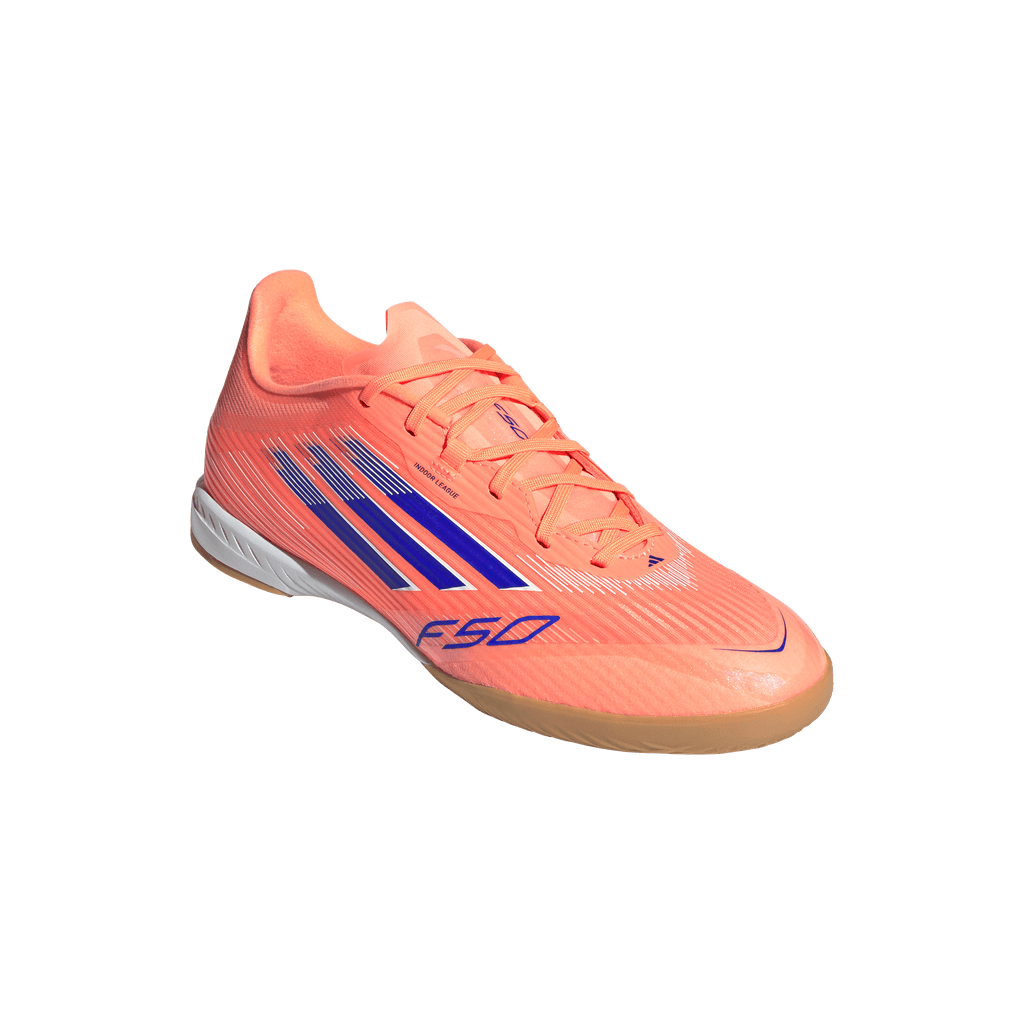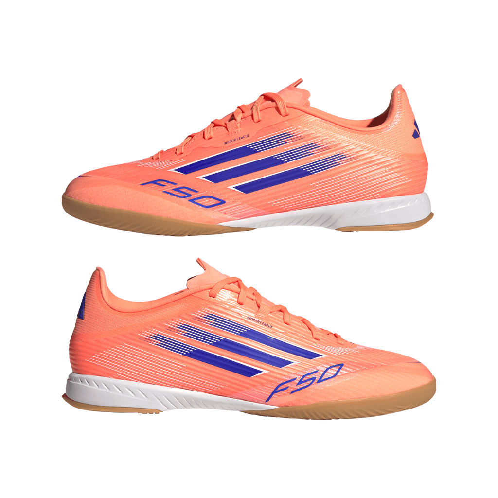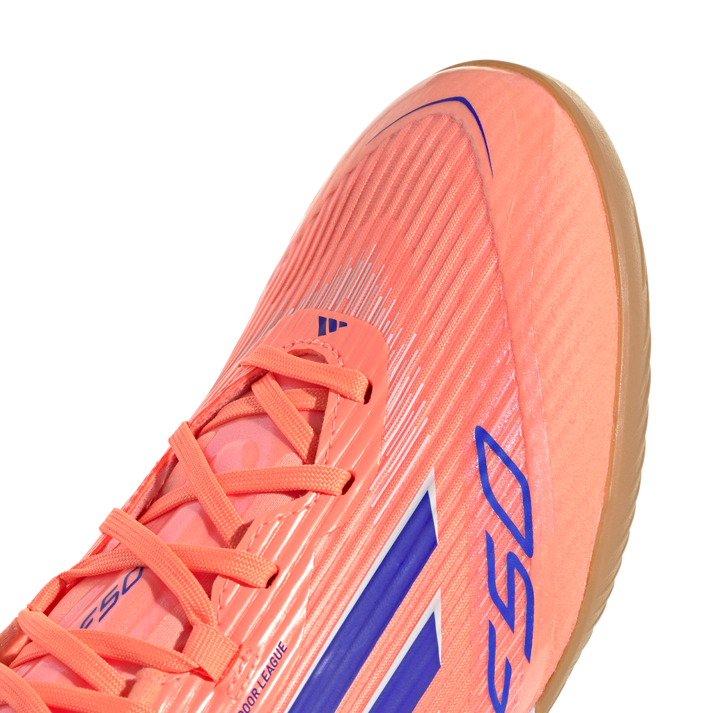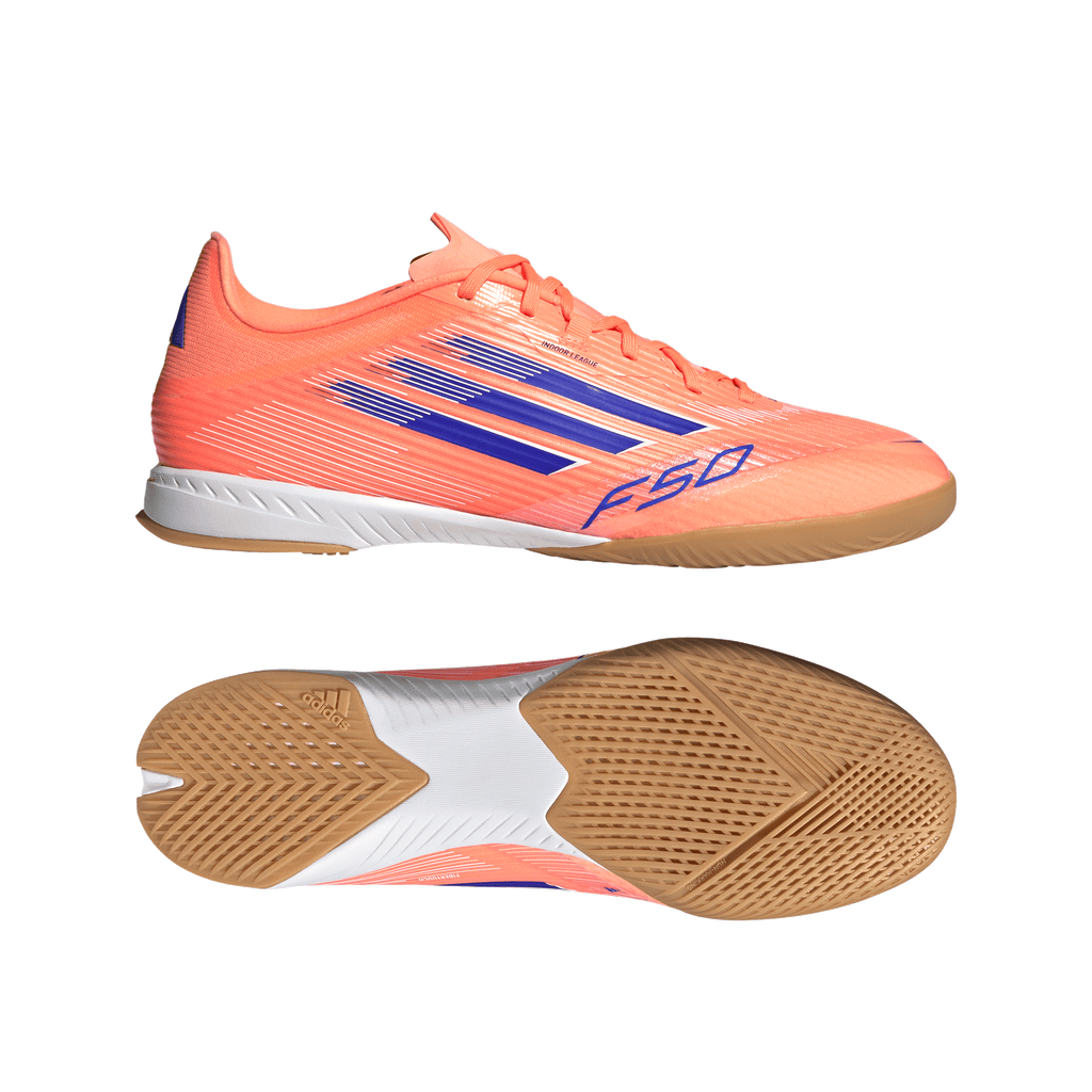 Find your fast to truly express yourself on the court. Feel the rush in adidas F50 cleats engineered for speed. Finished with a suede toe bumper for enhanced ball contact, the Fiberskin upper on these League soccer cleats employs an adaptive Tunnel Tongue for rock-solid lockdown. That non-marking rubber outsole lays down serious pace on indoor surfaces.