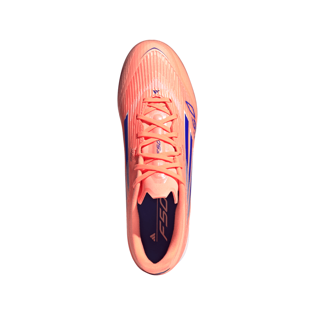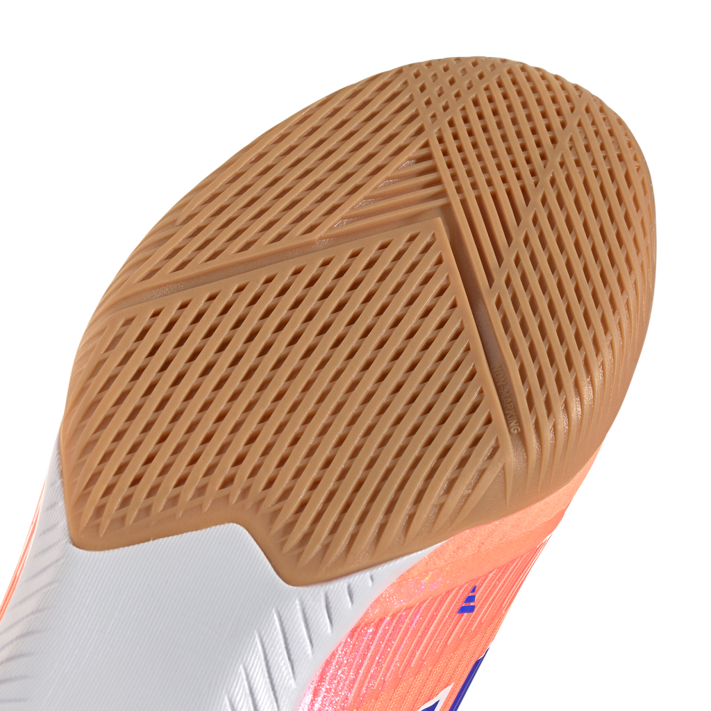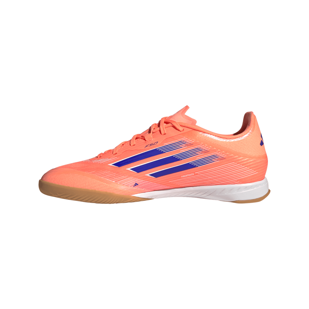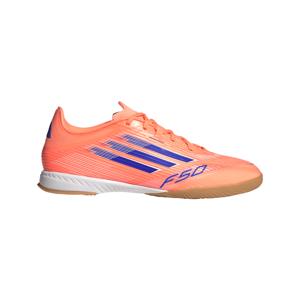 Find your fast to truly express yourself on the court. Feel the rush in adidas F50 cleats engineered for speed. Finished with a suede toe bumper for enhanced ball contact, the Fiberskin upper on these League soccer cleats employs an adaptive Tunnel Tongue for rock-solid lockdown. That non-marking rubber outsole lays down serious pace on indoor surfaces.