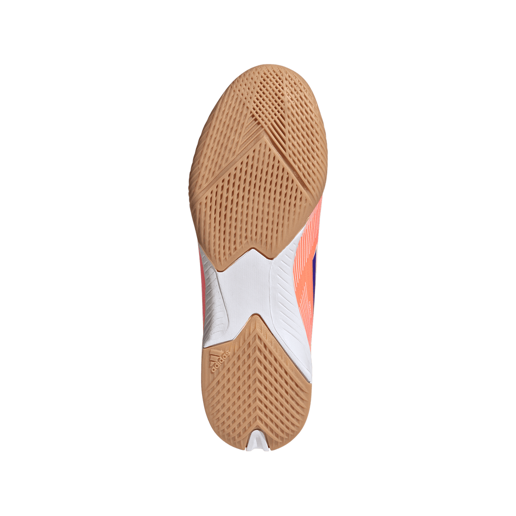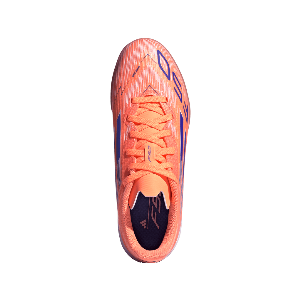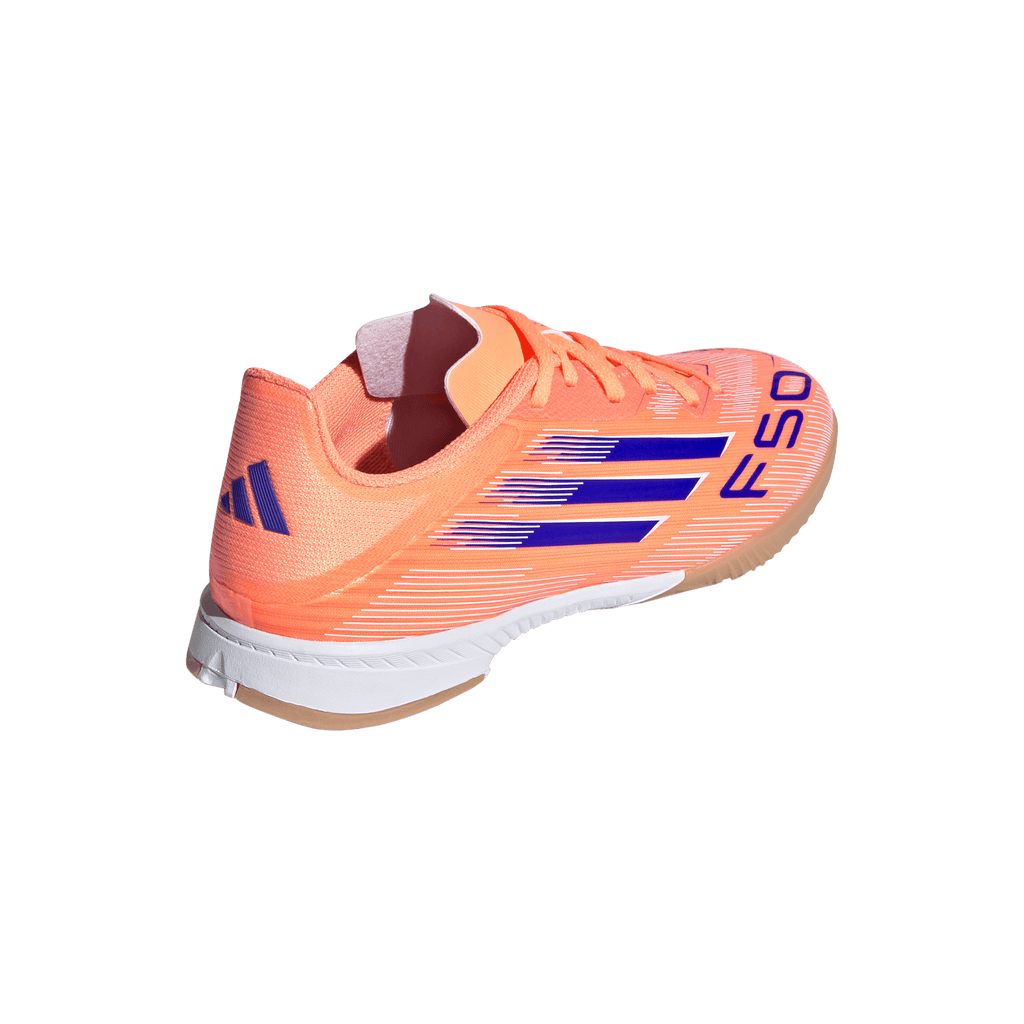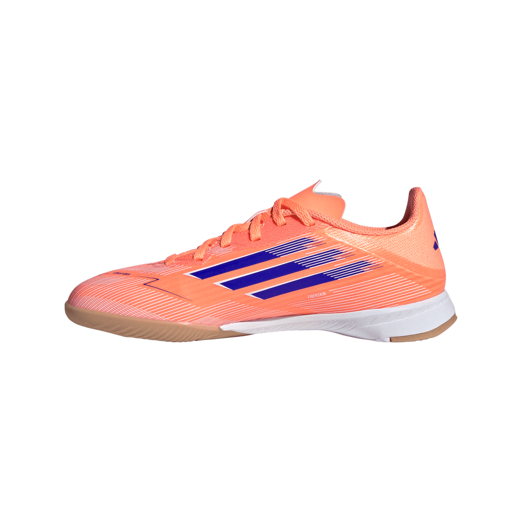 Find your fast to truly express yourself on the court. Feel the rush in adidas F50 cleats engineered for speed. Standing out with an eye-catching Sprintgrid print, the Fiberskin upper on these juniors' League soccer cleats employs a perforated tongue for cool play. That non-marking rubber outsole lays down serious pace on indoor surfaces.