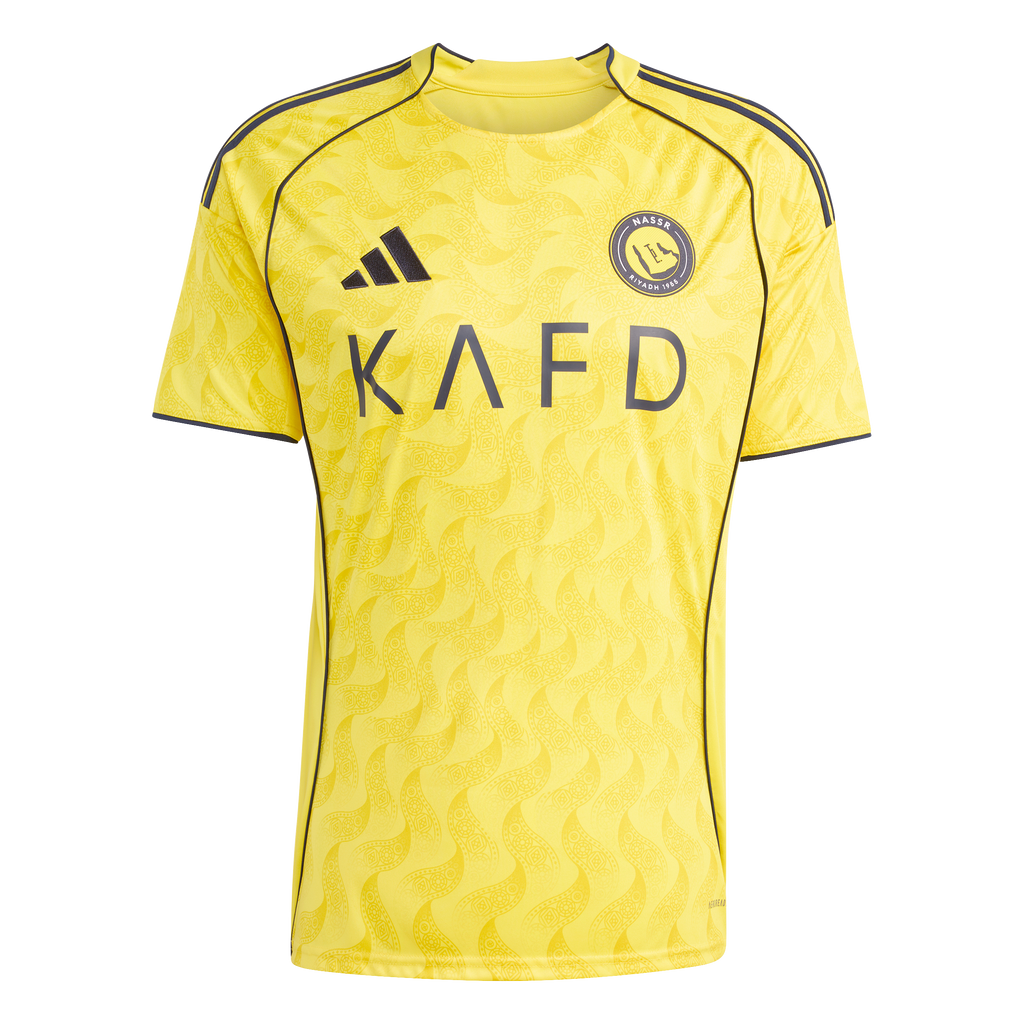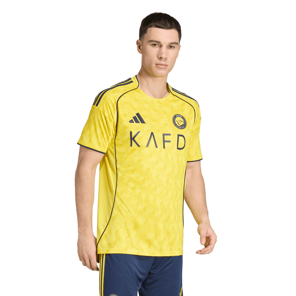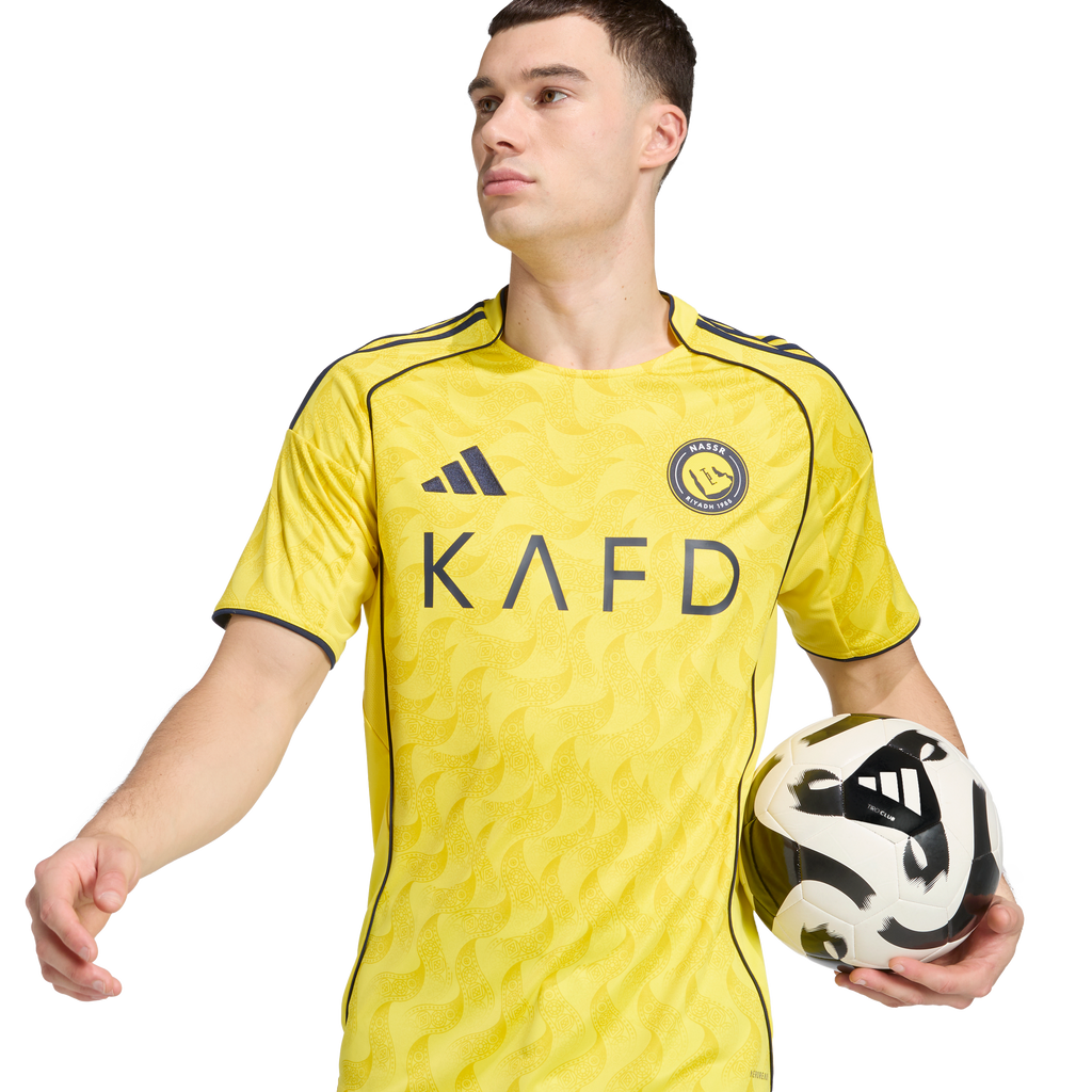 Highlight your football fandom every time you pull on this Al Nassr FC home jersey from adidas. Its radiant design draws inspiration from the blazing Riyadh sun and its soft fabric and moisture-managing AEROREADY ensure fans stay comfortable while they shout their support. On the chest, a club crest shows your loyalty.
