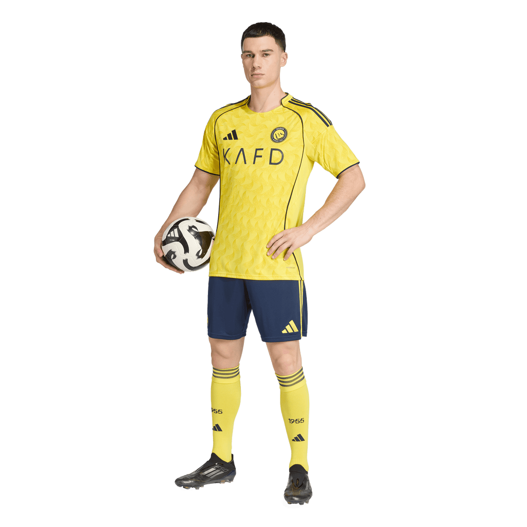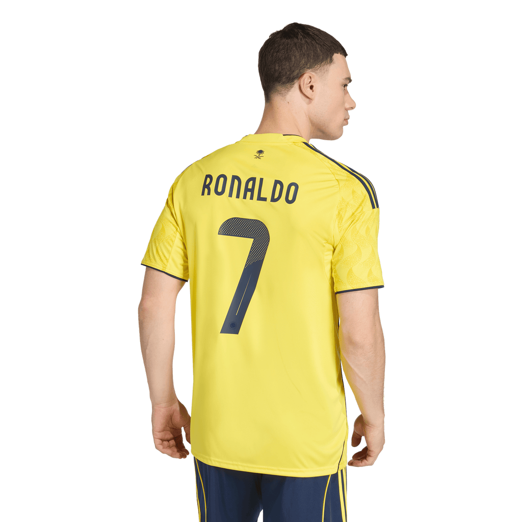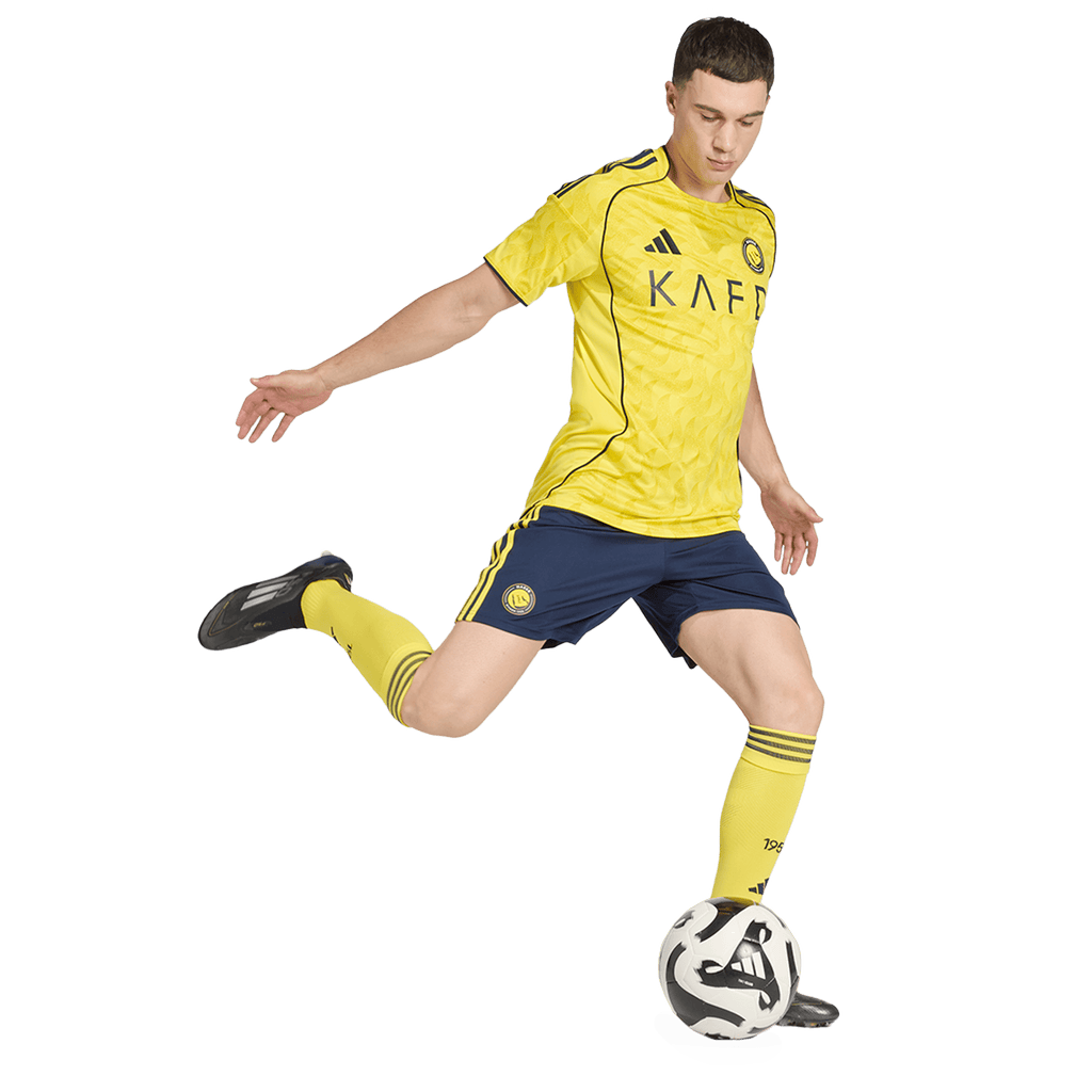 Highlight your football fandom every time you pull on this Al Nassr FC home jersey from adidas. Its radiant design draws inspiration from the blazing Riyadh sun and its soft fabric and moisture-managing AEROREADY ensure fans stay comfortable while they shout their support. On the chest, a club crest shows your loyalty.