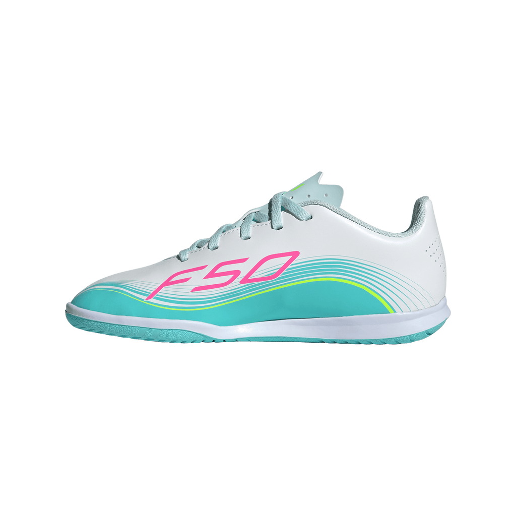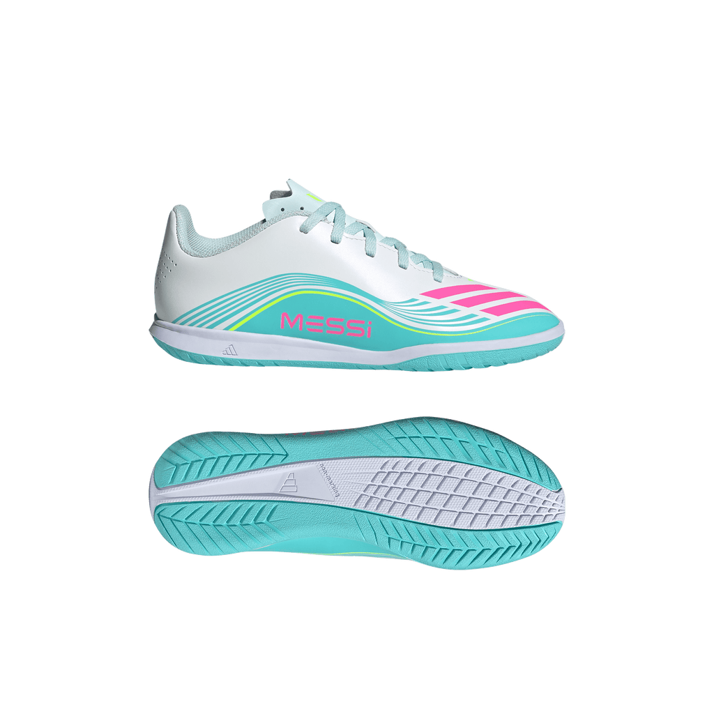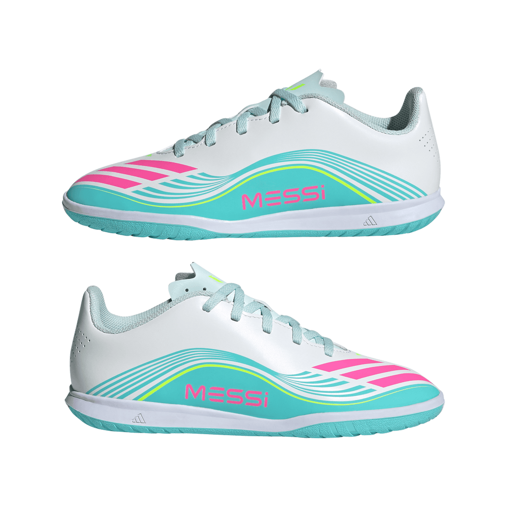 The adidas F50 Messi Club Indoor Football Shoes let young players move with speed and confidence and take their inspiration from their legendary namesake, Leo Messi.