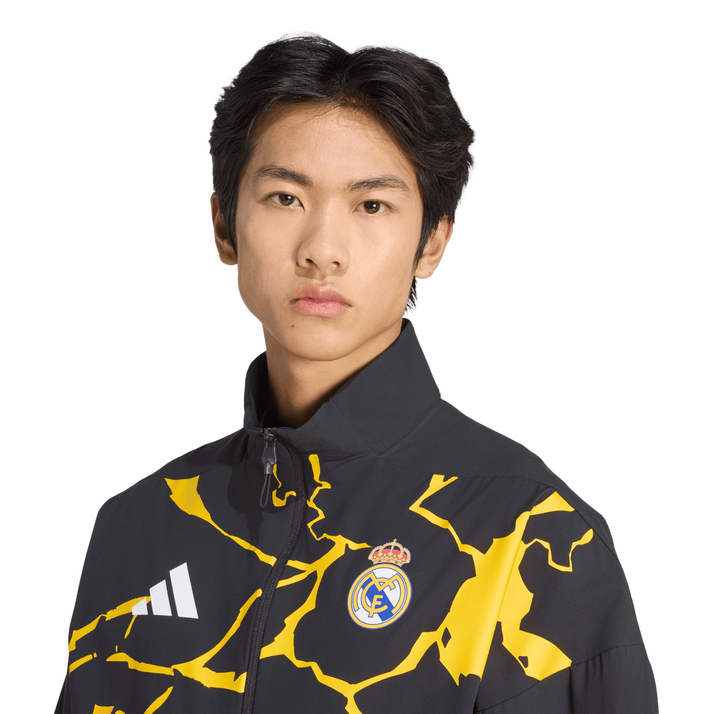 Inspired by the iconic lines on the field of play, the jacket features matte rubber prints that echo the precision and power of Real Madrid. Crafted in durable ripstop fabric with a loose-fit structure, it provides comfort and ease of movement.
