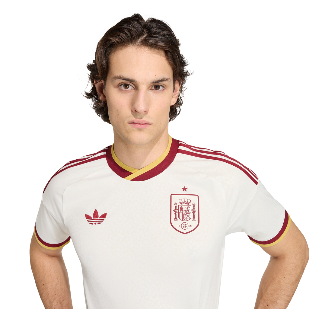 A celebration of classic Spanish literature, this adidas Spain 26 Away Jersey stands out with an intricate, repeating pattern inspired by old manuscripts and time-worn book pages.