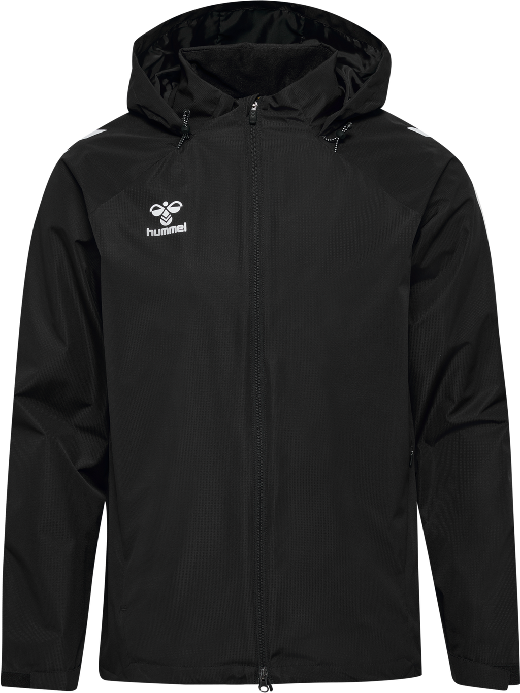 The hmlLEAD 2.0 ALL-WEATHER JACKET is crafted from durable woven material and features side pockets for storage. It has a fluorine-free, water-repellent finish, a packable hood with an adjuster, and built-in ventilation zones for breathability.