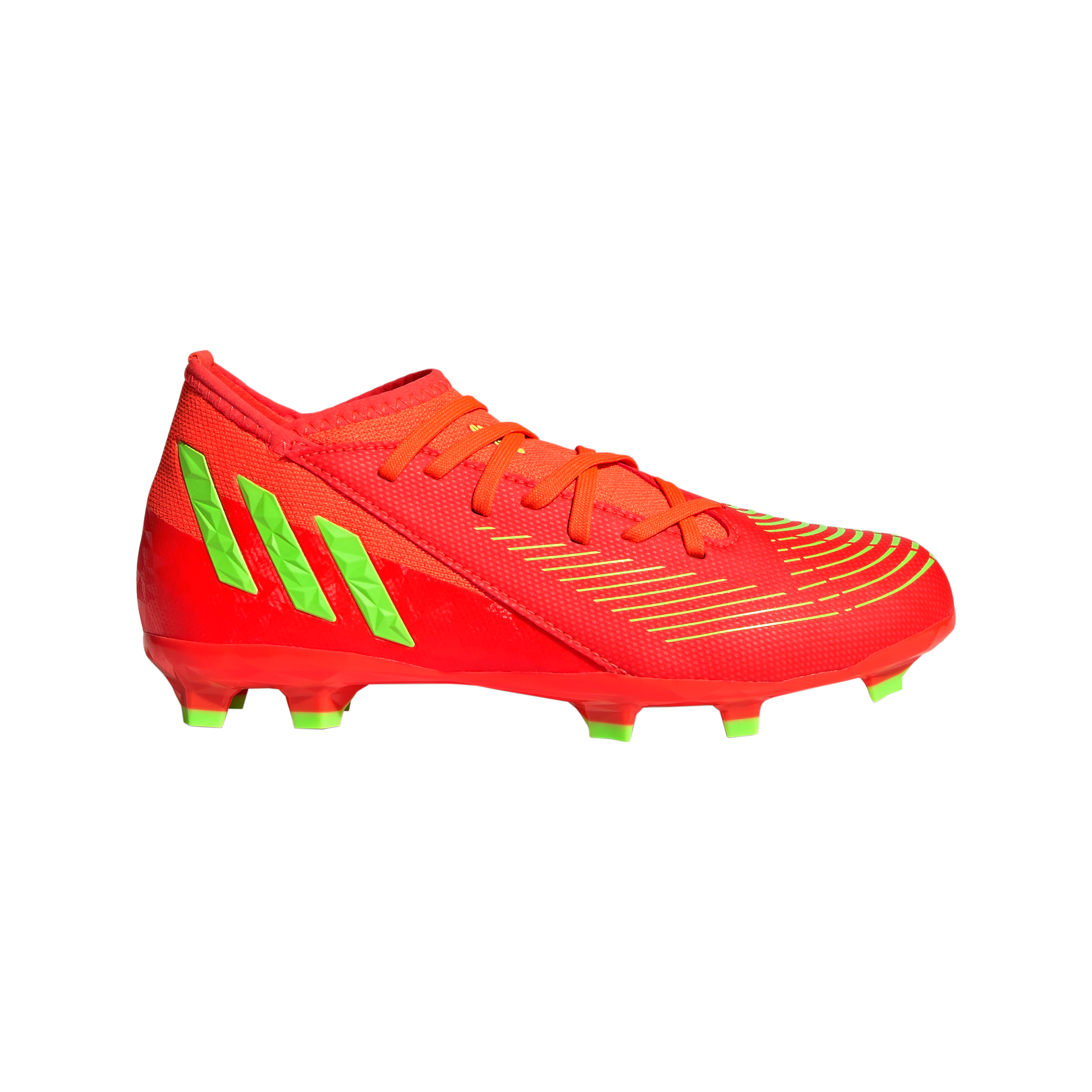 Swerve. Control. Power. adidas Predator has all angles covered. Hit the pitch and find your edge in these juniors' firm ground football boots. Deployed across their soft synthetic upper, grippy Control Zone print assists you with every touch of the ball. Underneath, an eye-catching, angular TPU outsole ensures you stay in charge on dry natural grass.