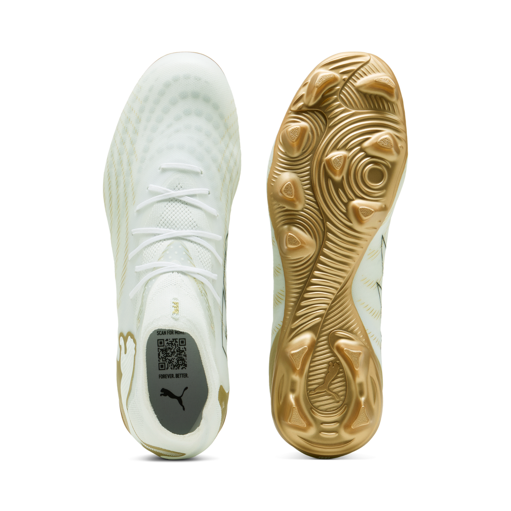 The upper of the shoes is made with at least 20% recycled materials.FIT: No two feet are the same. That’s why FUTURE adapts. The soft lining combined with a multi-textured engineered knit adapts to your foot like a second skin, creating a snug, natural fit that keeps you locked in without feeling restricted. Because when you’re free to move, you’re free to create.FIT: The PWRTAPE at the midfoot keeps you locked in, adding stability without holding back movement.SKILL: Reengineered mesh layer with 3D grip zones for enhanced ball grip and control.AGILITY: Stud shape and placement around the pivot point enable 360-degree freedom of movement needed for explosive direction changes.Lightweight removable sockliner with NanoGrip technology.Regular fit to wide fit.