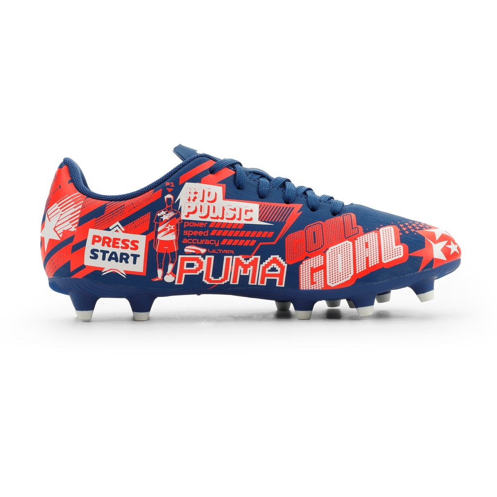 Unleash your speed with the signature style of a soccer icon. The ULTRA PLAY, reimagined in a bold Christian Pulisic special edition, combines lightweight comfort with striking design. A soft synthetic upper with debossed and printed details delivers standout looks and lasting performance, while the TPU outsole ensures optimal grip and agility, so young players can move freely and play fearlessly, just like CP himself.